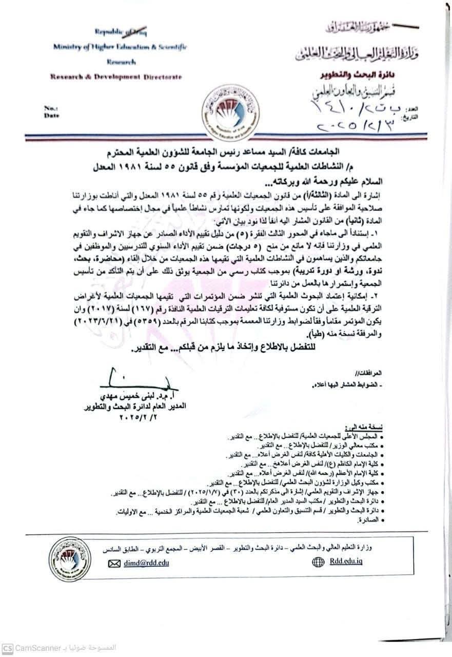 استناداً إلى أحكام المادة (17/أ) من قانون الجمعيات العلمية رقم (55)...